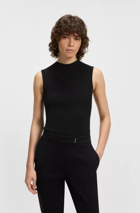 Ribbed-knit top with mock neckline