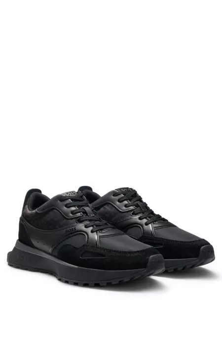 BOSS-MOTION trainers with knitted uppers and leather trims
