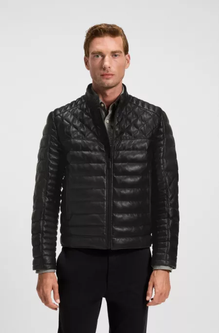 Relaxed-fit padded leather jacket with patterned quilting