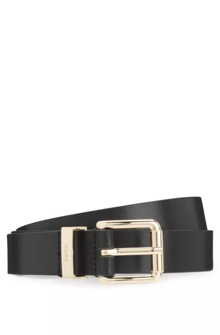 Italian-leather belt with gold-tone buckle