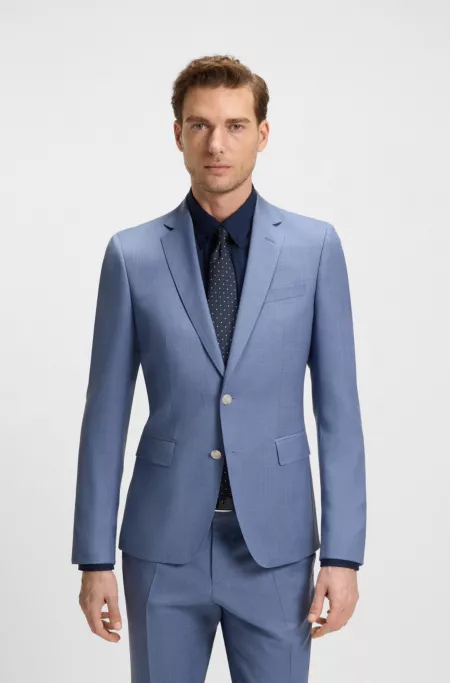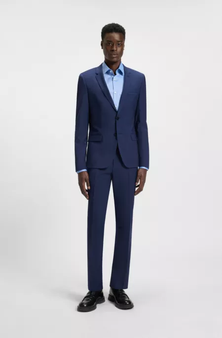 Cut to a slim fit, this two-piece HUGO Menswear suit is crafted in wool-blend poplin with stretch for comfort in movement.