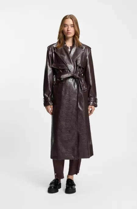 Long-length relaxed-fit trench coat in faux leather
