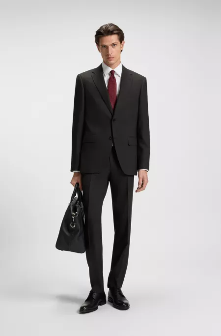 Two-piece slim-fit suit in a patterned wool-silk blend