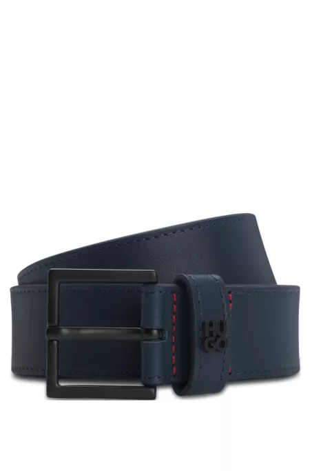 A 4cm belt in smooth leather with a matte-black buckle featuring a logo trim by HUGO. For the best fit, we advise ordering a belt one size larger than your waist size.