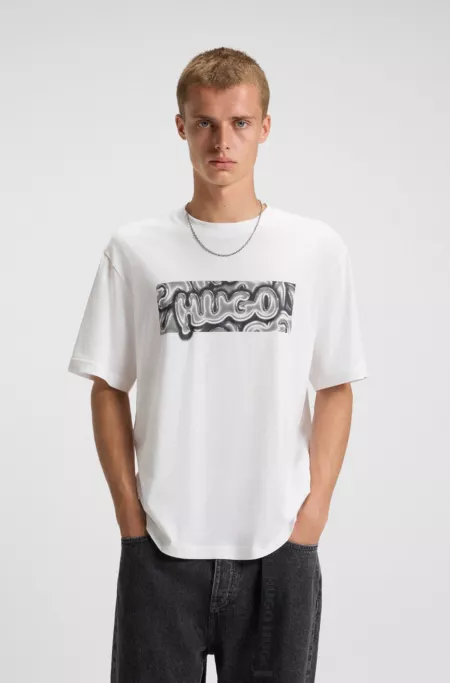Cotton-jersey T-shirt with graphic logo print