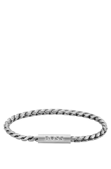 With its silver tone and braided chain, this BOSS Jewelry cuff elevates everyday looks. Magnetic closure with raised BOSS logo.