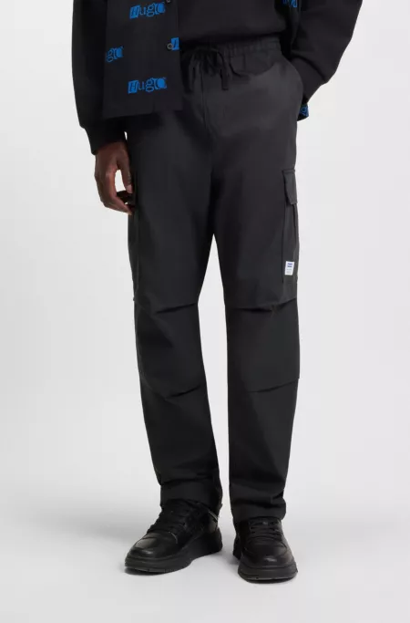Adjustable at the waist and cuffs, these relaxed fit HUGO Menswear trousers are a fresh take on classic cargos. Sporty cotton ripstop. Special logo label. This product contains at least 80% better raw materials.