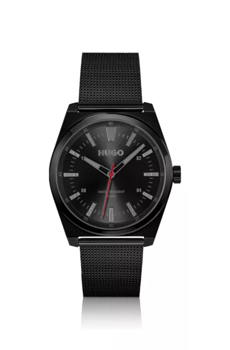 Style black-plated watch with mesh bracelet
