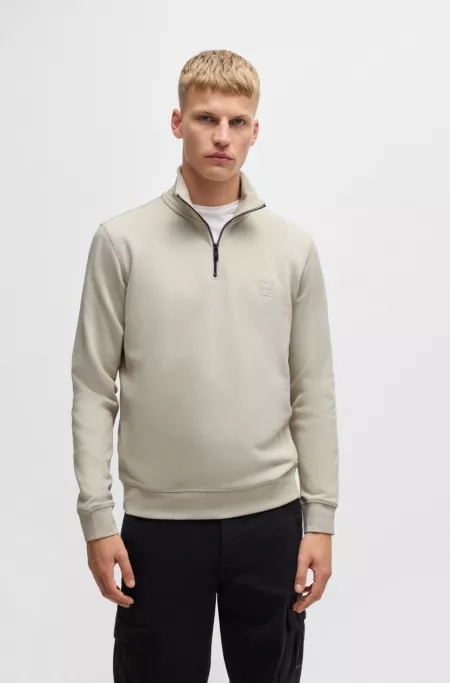 Quarter-zip cotton-terry sweatshirt with logo patch