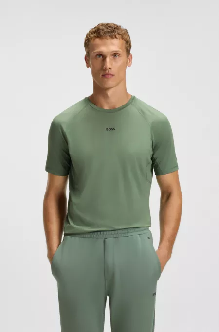 A slim-fit T-shirt by BOSS Menswear, featuring flatlock stitching for comfort and free movement. Lightweight and quick-drying stretch fabric. Decorative reflective branding.