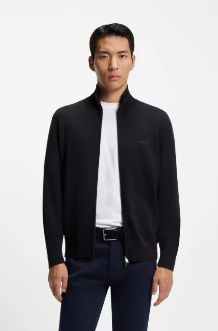 Zip-up cardigan in extra-fine merino wool