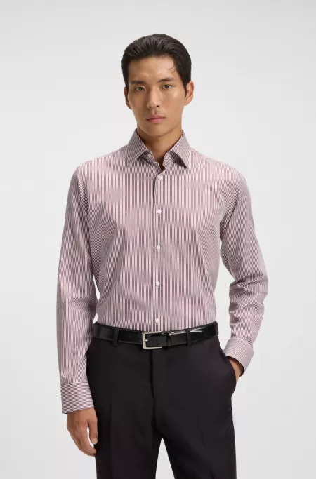 Easy to iron for straightforward care, this regular BOSS Menswear shirt is a timeless component of a business wardrobe. Crafted in soft striped cotton satin.