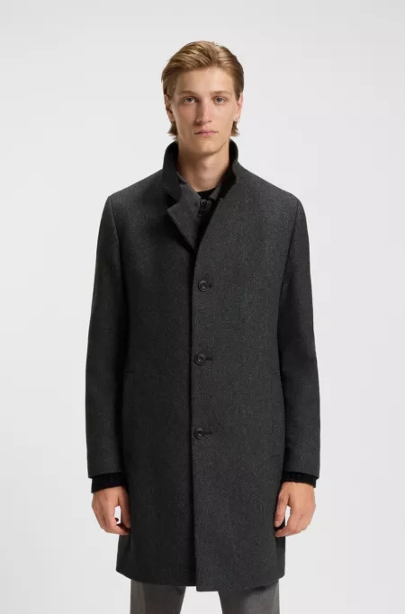 Wool-blend coat with stand collar