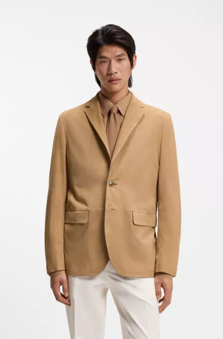 (14)The men’s beige blazer is a cornerstone of sophisticated dressing. Whether tailored for formal affairs or dressed down with denim for smart-casual appeal, it offers unmatched versatility. Layer it over a fine-knit polo or a crisp white shirt for a look that moves seamlessly from day to night. Explore HUGO BOSS tailoring that strikes the perfect balance between refinement and modernity.
