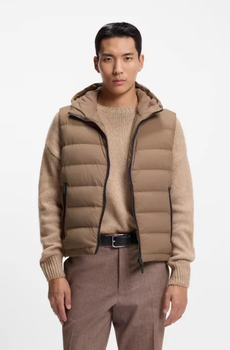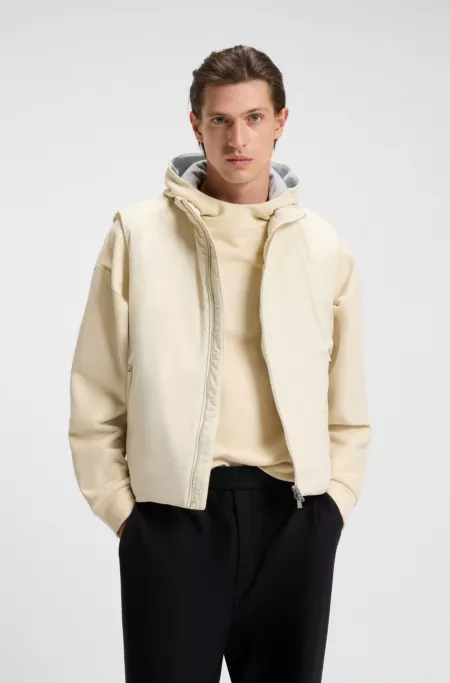 (222)Enhance your outdoor adventures with HUGO BOSS men's outdoor clothing, where sophistication meets performance. Our water-repellent coats and waterproof jackets ensure you stay dry and stylish, while quilted gilets offer warmth without bulk. Embrace the chill with our refined gloves and hooded coats, designed for ultimate comfort. Step confidently in our robust boots, crafted for any terrain. HUGO BOSS cargo trousers combine practicality with a tailored silhouette, ideal for the modern explorer. Each piece reflects the HUGO BOSS commitment to quality and style, ensuring you conquer the elements with elegance and confidence. Discover innovation and luxury in every detail.