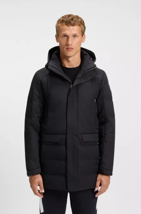 Water-repellent hooded parka with down filling