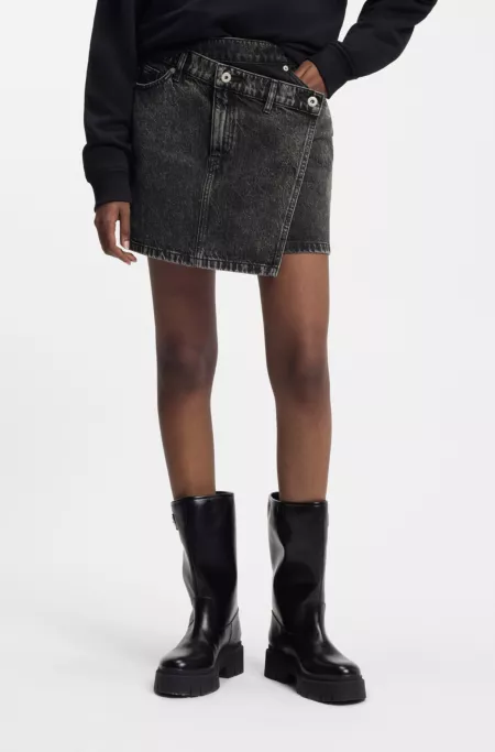 Black-denim skirt with asymmetric waistband