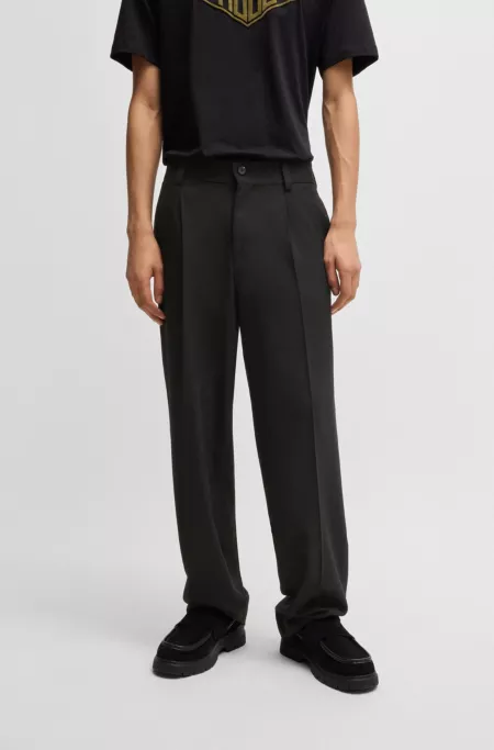In a modern fit with front pleats, these HUGO Menswear trousers secure a fresh formal profile. Crafted in stretch dobby blended with soft wool.