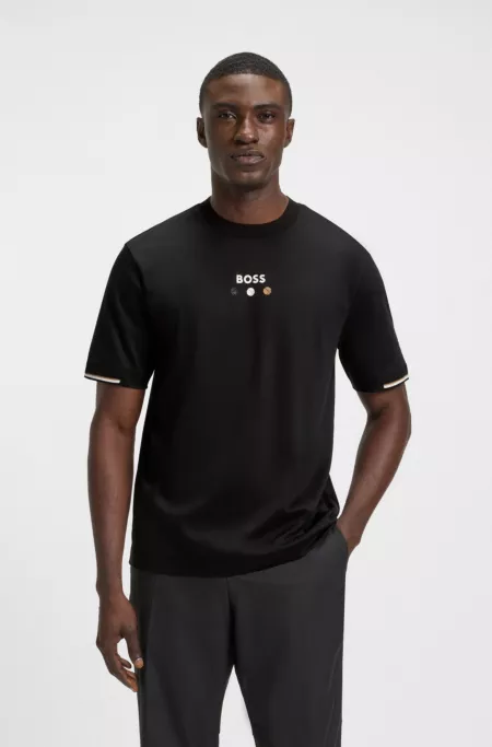 Relaxed-fit T-shirt with tennis-inspired mesh-print logo