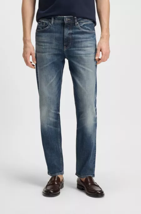 Tapered-fit jeans in vintage-washed blue denim