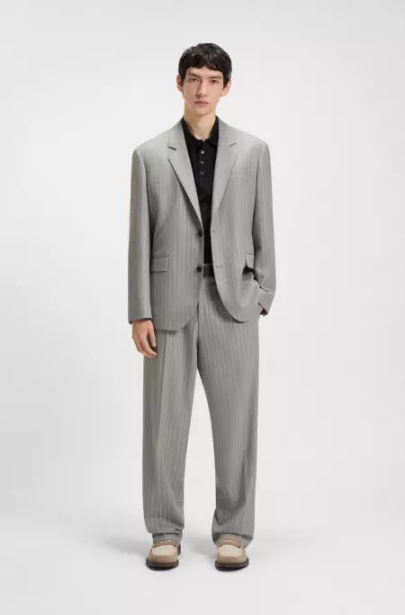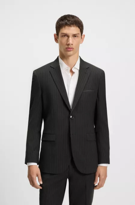 (21)Pinstripe suits offer a sharp, professional look that exudes confidence and style. Whether you're dressing for the office or a formal event, the subtle lines of pinstripes add depth and dimension to your outfit. Discover HUGO BOSS pinstripe suits, meticulously tailored for a sleek, sophisticated fit that gives you a powerful and refined appearance.