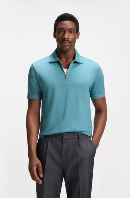Zip-neck polo shirt in moisture-wicking stretch cotton