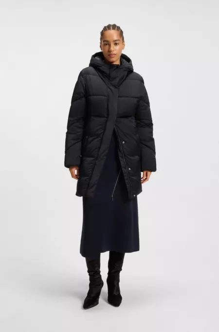 Long puffer jacket with water-repellent finish