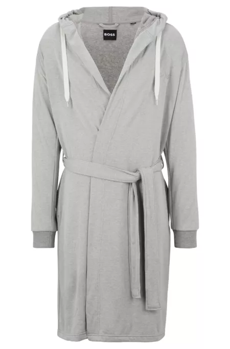 Cotton-jacquard dressing gown with embroidered logo