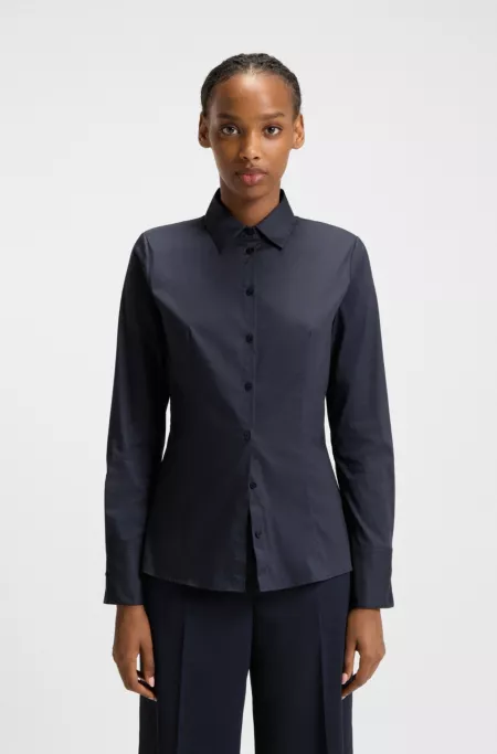 Slim-fit blouse in easy-iron poplin