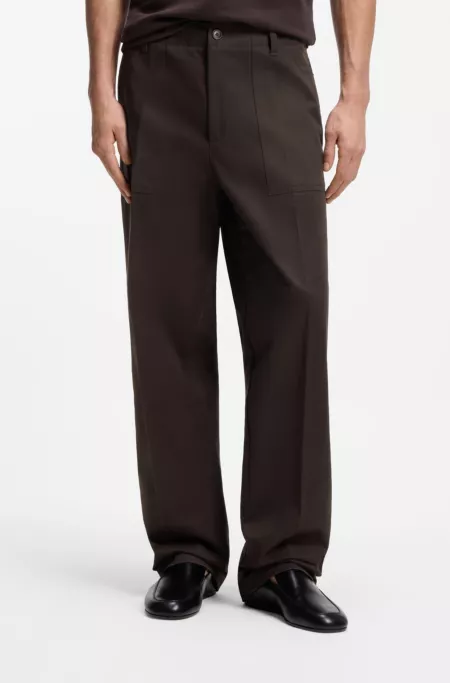 These casual BOSS Menswear trousers are crafted in pure-cotton twill with a soft-brushed finish. Creating a modern, oversized silhouette with their relaxed fit, they feature front and back pockets for a functional finish. This style was showcased on the BOSS Summer 26 Fashion Show runway in Milan.