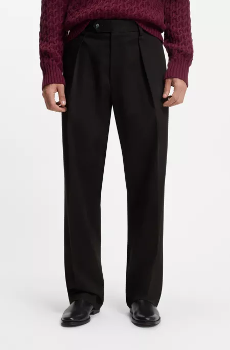 (19)Ease meets elegance with relaxed pleated pants. Designed for movement and modern sophistication, these trousers redefine comfort with a tailored edge. Pair them with a structured blazer for effortless refinement or dress them down with a casual knit. Whether in soft wool or lightweight cotton, HUGO BOSS delivers relaxed tailoring at its finest.