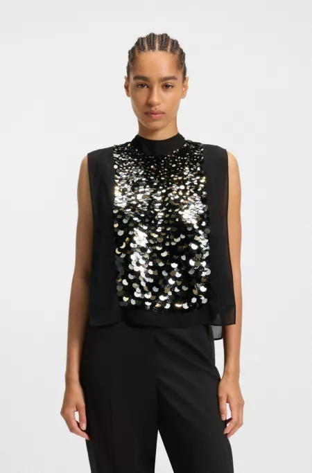 Regular-fit blouse with sequin embellishments