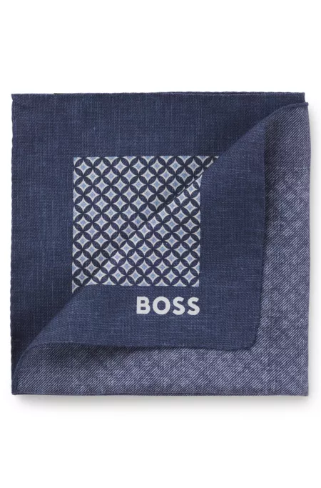 A refined finish for any formal look, this BOSS Menswear pocket square has a digital print framed by a border. Crafted in 100% silk. Measurements: 35 x 35cms.