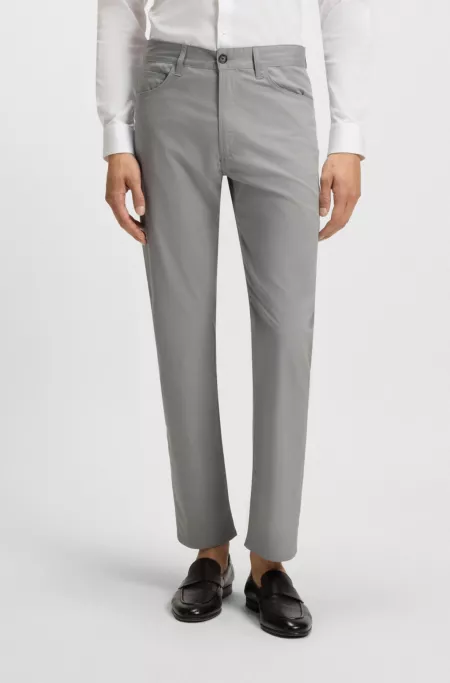 Build a range of timeless looks with the clean fit of these BOSS Menswear trousers. Crafted in cotton blended with luxurious silk and stretch.