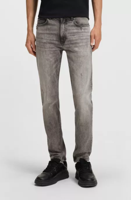 Extra-slim-fit jeans in distressed grey stretch denim