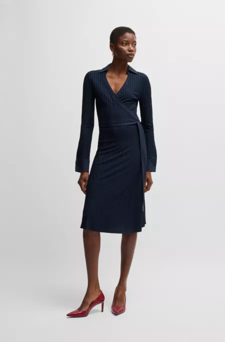 Wrap-front dress in a pinstripe linen blend