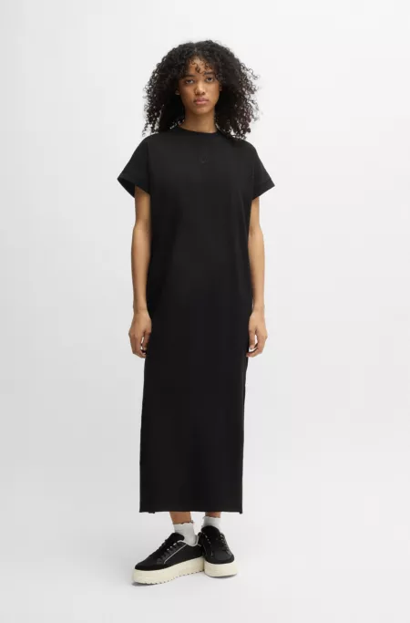Cotton-jersey T-shirt dress with Happy HUGO logo