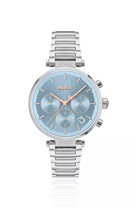 Stainless-steel T-bar watch with brushed baby-blue dial