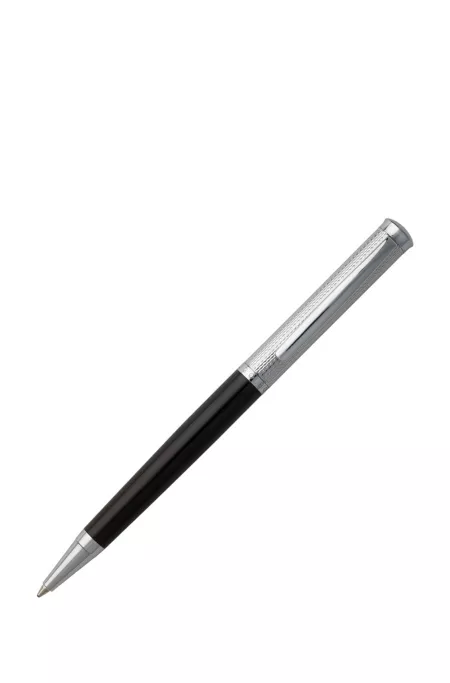 Black ballpoint pen with engraved pattern