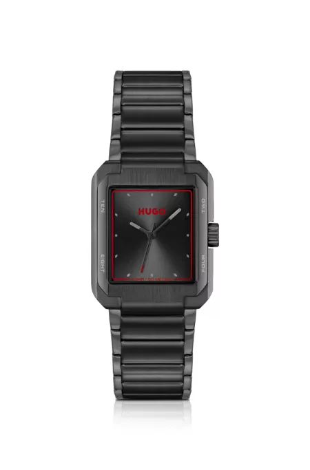 Stainless-steel link-bracelet watch with black dial