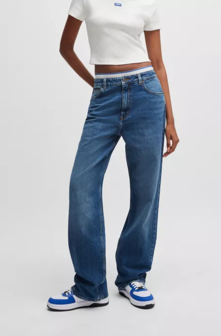 Laid-back 70s-inspired jeans crafted in blue comfort-stretch denim with a salt-and-pepper effect by HUGO Womenswear.