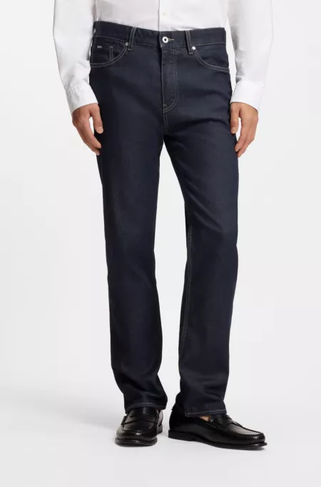 Straight-fit jeans in dark-blue stretch denim