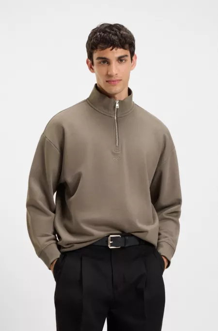 Quarter-zip cotton-terry sweatshirt with logo patch