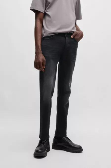 Tapered-fit jeans in black stretch denim