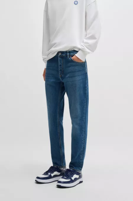 Tapered-fit jeans in pure-blue comfort-stretch denim