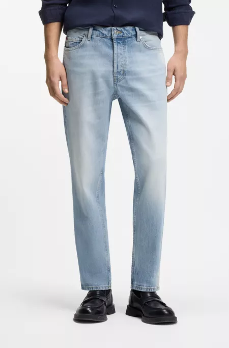 Tapered-fit jeans in mid-blue stretch denim