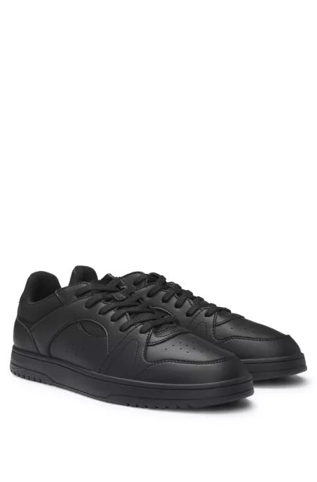 Faux-leather lace-up trainers with logo details