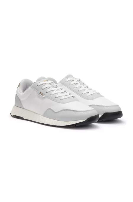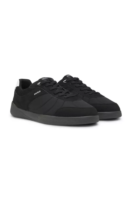 Mixed-material lace-up trainers with counter logo
