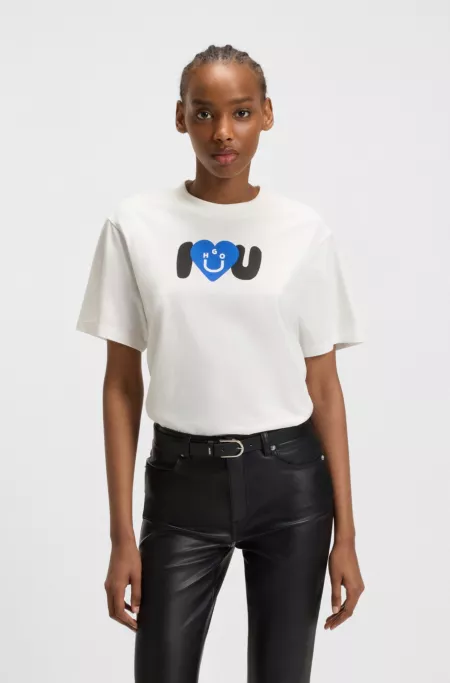 Cotton-jersey T-shirt with Happy HUGO graphic