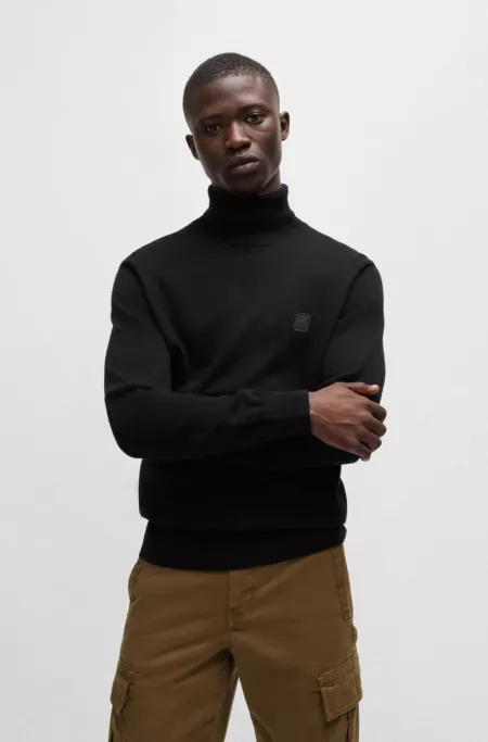 Merino-wool rollneck sweater with embroidered logo